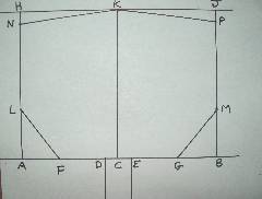 From “N”, go down 3½” and mark the point “L”. From “P”, go down 3½” and mark the point “M”.